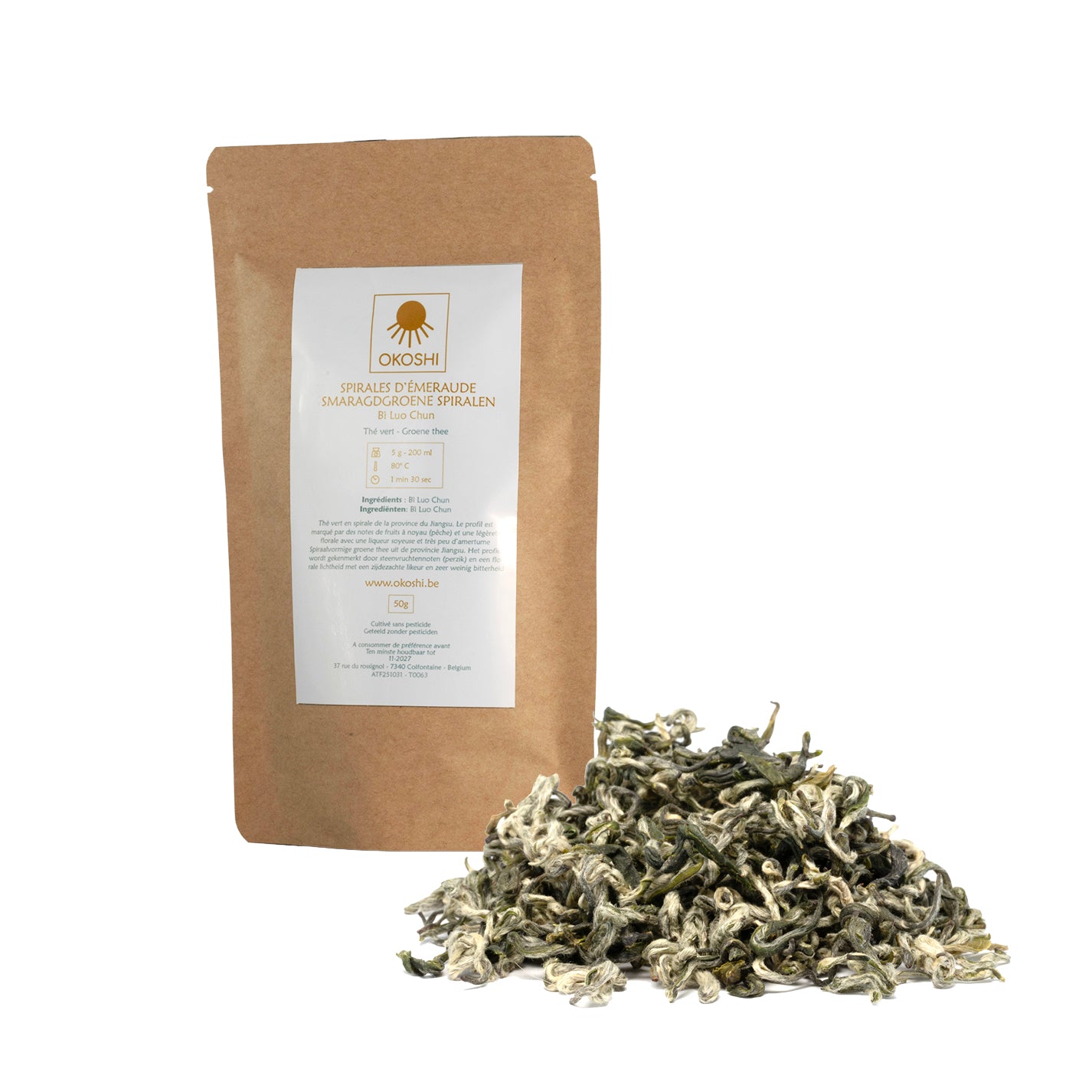 Classé parmi les dix thés les plus célèbres de Chine, le Bì Luo Chun (« Escargot Vert du Printemps ») est un chef-d'œuvre de Suzhou. Ses bourgeons délicats, roulés à la main en spirales serrées, offrent une liqueur vert clair d'une élégance rare. En bouche, il déploie une fraîcheur moelleuse, mariant des notes florales et fruitées à une finale sucrée et riche.